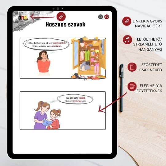 Ez nem egy száraz PDF, hanem egy valódi tanulási eszközkészlet, amely segít, hogy magabiztosabbá válj a mindennapi német kommunikációban.